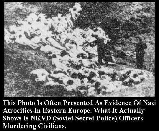 In November 1941, the British government decided that there were not enough dramatic photographs of Nazi atrocities. The BSC arranged for a studio in Canada to create such photographs using actors, stage-sets, costumes, and dummies for the manufacture of war scenes in which actors dressed up as Nazi soldiers were shown mass-murdering innocent people. These photos were widely circulated in the United States. – Desperate Deception: British Covert Operations in the United States, 1939-44