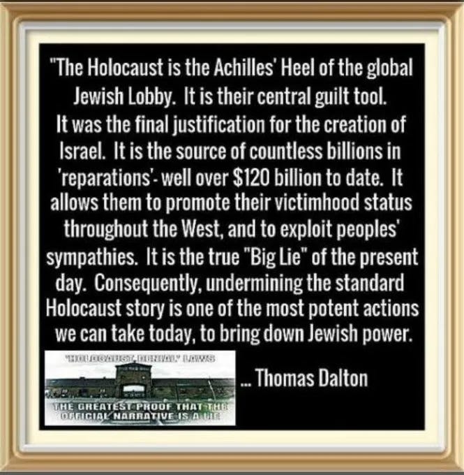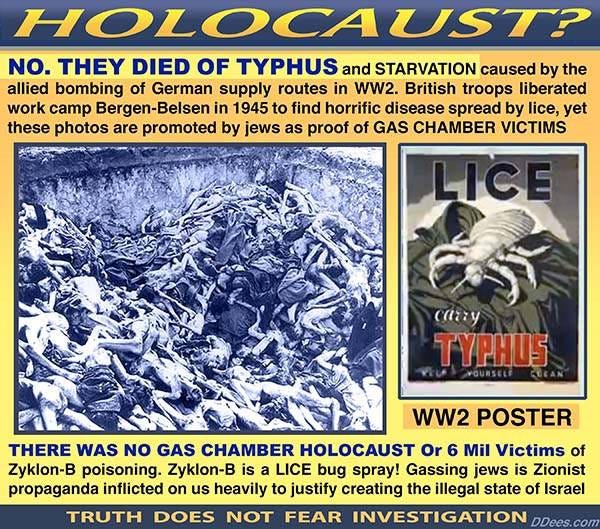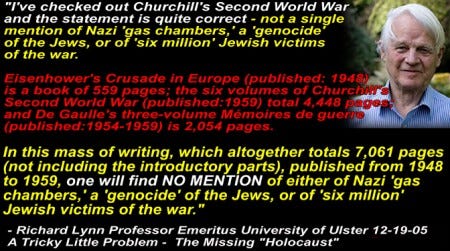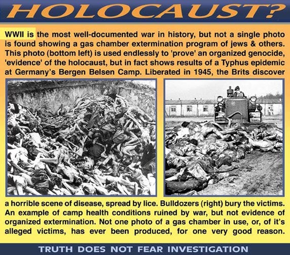 The ‘Holocaust’ storyline is one of the most easily debunked narratives ever contrived. That is why those who question it are arrested and persecuted. Truth needs no protection from scrutiny.
