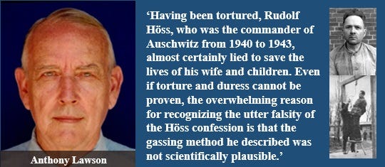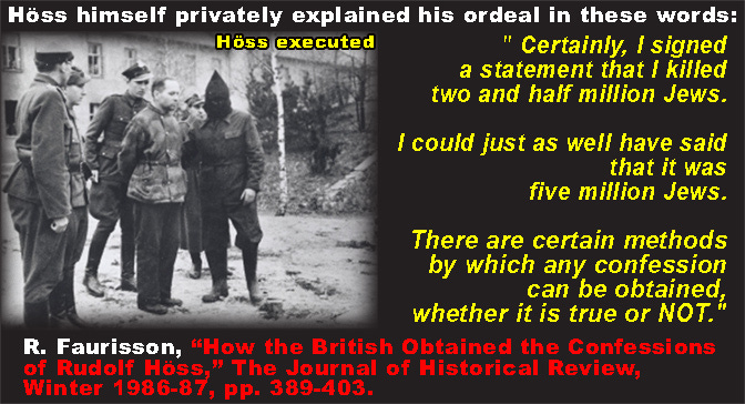 Admit it – that is the first description of German gas chambers you have ever read! You can’t have humans tossed into them. The former Auschwitz commander Rudolf Höss came up with a different story, which all the world now believes in – a tribute to the efficacy of British torture techniques.