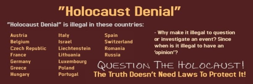 HOLOCAUST DENIAL LAWS: THE TRUTH IS NO DEFENSE – EVIDENCE INADMISSABLE, DEFENSE FORBIDDEN