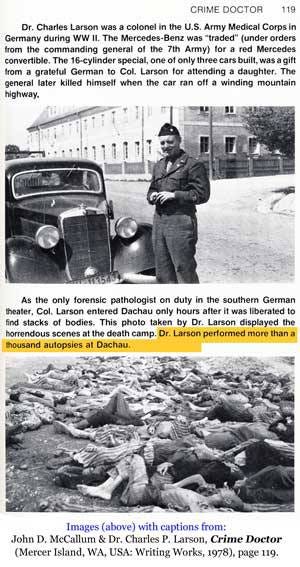 There are NO autopsy reports of any Nazi gassing victims from any western doctors. Although there were many thousands of corpses available in German concentration camps by the end of the war and although at least 1,000 autopsies were performed, none showed any evidence of death by poison gas or poison. Dr. Charles P. Larson made those autopsies to find proof of gassings but found nothing.