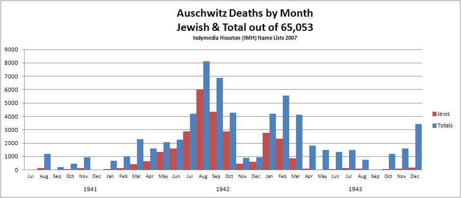 7. There are two main primary-sources for how many died at Auschwitz: the Bad Arolsen archives (290k altogether in German labour-camps, 70k in Auschwitz) and the death-Books of Auschwitz – 70k dead in Auschwitz. Then what percentage were Jews? The British intelligence decrypts give you that, as around 40%. So you get an upper limit of 40k Jews dying at Auschwitz. The Bad Arolsen archives list everyone who lived and died in all the German labour camps. The question naturally arises as to what is the total number recorded in this tremendous archive. Clearly the managers of this archive are not at liberty to tell of this or they would be jailed for so awful a crime.