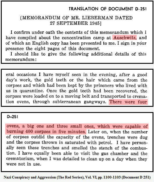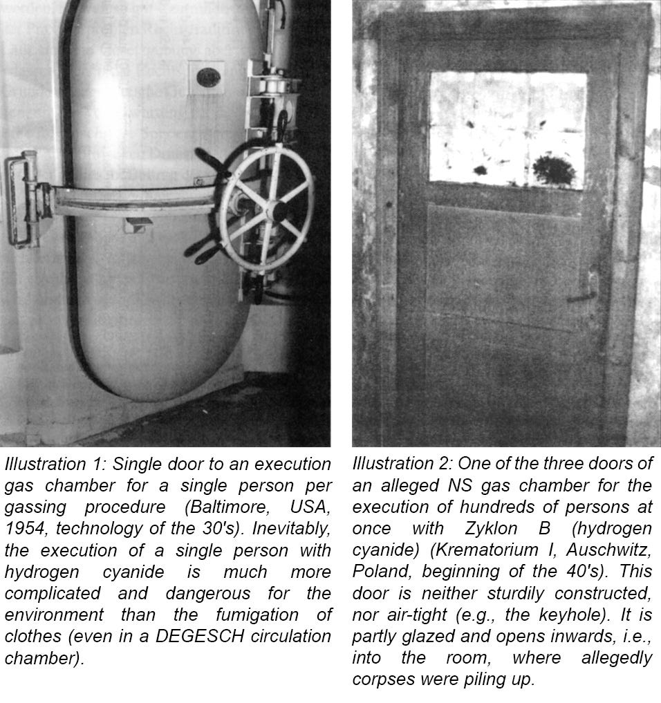“The procedures of mass-gassing as attested to by witnesses during their interrogation before various courts of law, as cited in judicial rulings, and as described in scientific and literary publications, in any building of Auschwitz whatsoever, are inconsistent with documentary evidence, technical necessities, and natural scientific law.”