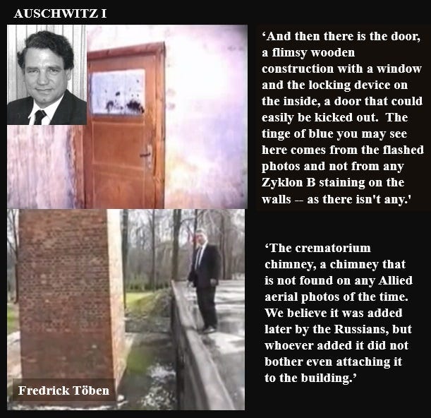 “When the Auschwitz museum was confronted with the fact that the innocuous delousing chambers at Auschwitz have blue walls – due to being saturated with blue iron cyanide compounds – but the alleged homicidal gas chambers have not, they commissioned their own chemical research. Instead of testing wall samples for the chemicals that had caused the blue stains, the researchers they commissioned simply excluded those chemicals from their analysis by employing a procedure that could not detect them. They justified this measure with the claim that they did not understand exactly how these compounds could form and that they might therefore be mere artifacts. Researchers who don’t understand what they are investigating have no business becoming involved. In this case, however, it appears to be deliberate. They have deliberately ignored an obvious explanation–that Zyklon B was only used for delousing–which would have remedied their lack of comprehension. As a result of this failure to adhere to the principles of science, they produced a report of no scientific value, which they used to arrive at a predetermined conclusion.”