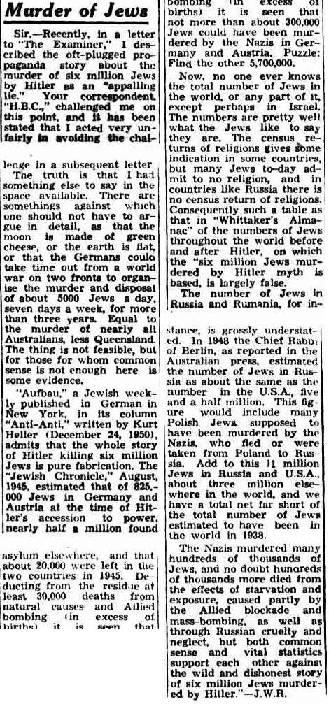 — John Weir, The Holocaust as Myth: Betraying the Public Trust